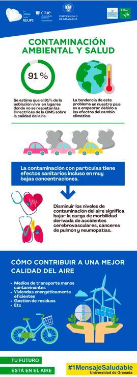 S'estima que la mala qualitat de l'aire podria causar a tot el món més de 6,5 milions de morts a l'any. Particularment, els efectes de respirar aire amb concentracions elevades de material particulado es considera la primera causa ambiental de mort i malaltia, i la novena causa absoluta, per davant del sedentarisme. L'efecte de les nanopartícules sobre la nostra salut encara és desconegut. Entre els efectes de l'exposició als contaminants de l'aire avui dia es confirma l'increment del risc de patir accidents cerebrovasculars, cardiopaties, càncer de pulmó i malalties respiratòries cròniques i agudes, incloent l'asma. Les persones amb malalties del cor o de pulmó, els adults de més edat, embarassades, diabètics i nens tenen major risc de patir problemes relacionats amb la contaminació de l'aire. Actualment s'estima que el 91% de la població viu en llocs on no es respecten les Directrius de l'OMS sobre la qualitat de l'aire. La tendència actual d'aquest problema és a empitjorar degut a l'efecte del canvi climàtic.
