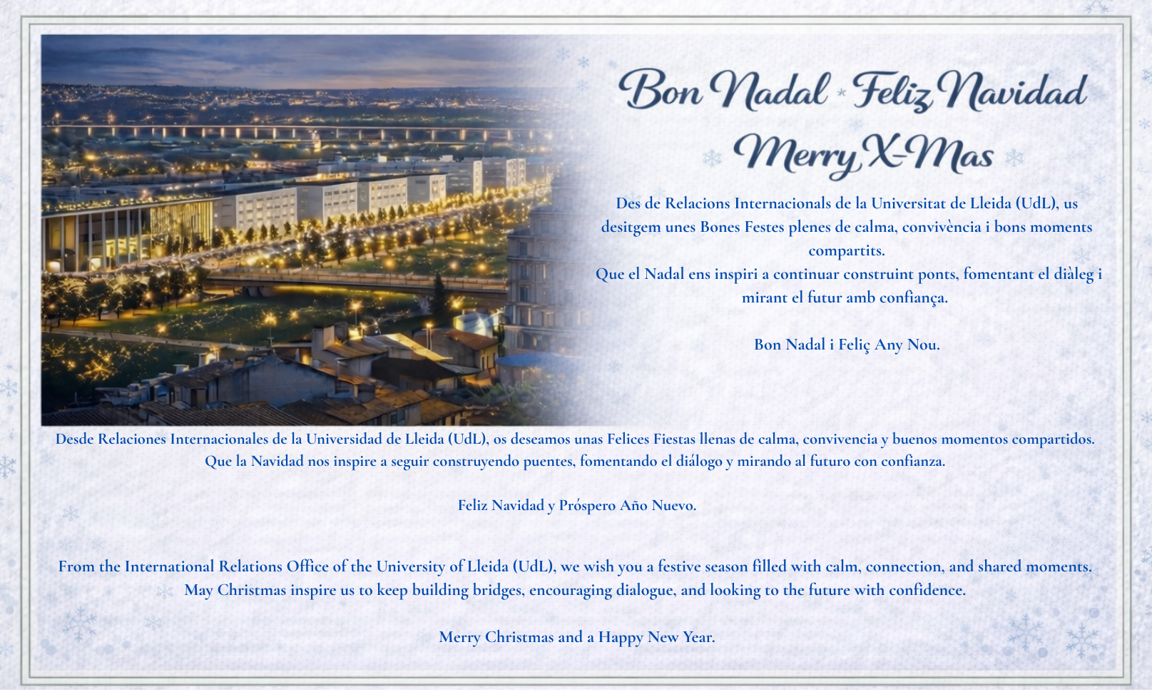 Descarregar pdfRelacions Internacionals és la unitat de la UdL que gestiona els programes de mobilitat acadèmica, com la mobilitat Erasmus+ i el programa Mobilitat UdL, entre altres. Des de Relacions Internacionals es fomenta la mobilitat de la comunitat universitària de la UdL envers altres universitats i es promou l’acolliment i integració a la UdL d’estudiants i personal docent i d’administració procedent d’altres institucions d’arreu del món. Així mateix, Relacions Internacionals canalitza les propostes d'acords d’intercanvi sorgides del professorat de la UdL o que arriben des d’altres institucions.