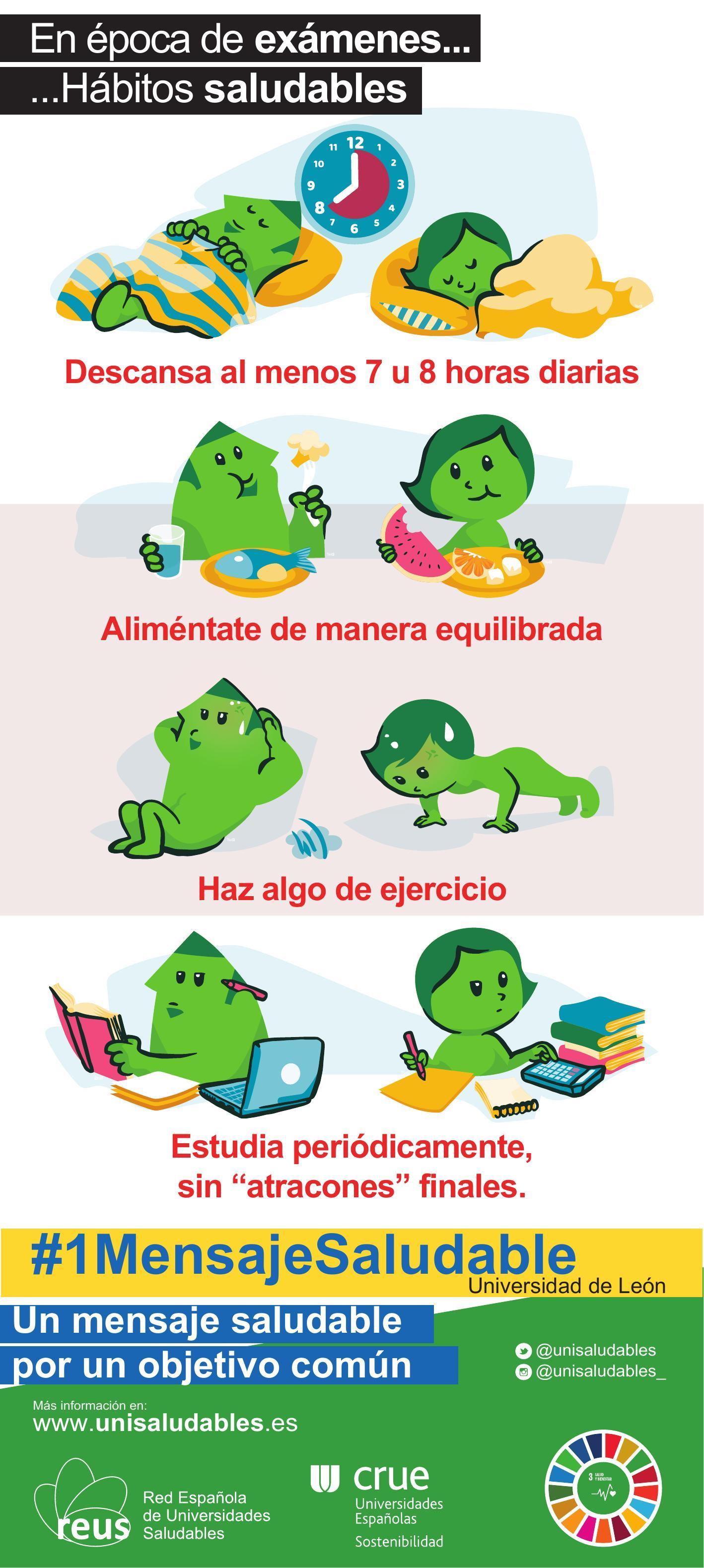 Des de la Xarxa Espanyola d'Universitats Saludables (REUS) us convidem a mantenir un estil de vida més sa i beneficiós per al nostre organisme, que repercutirà a aconseguir millors resultats acadèmics.