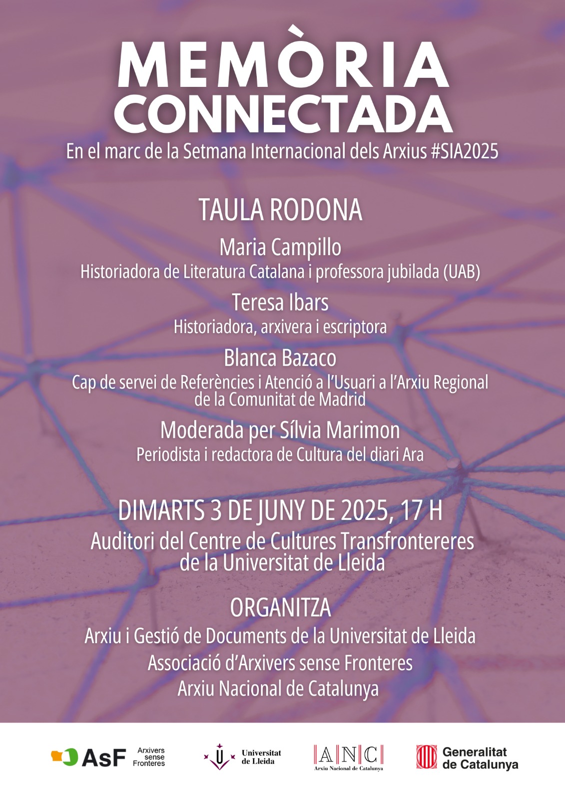 Dimarts 3 de juny del 2025. Memòria connectada, espai de reflexió. En el marc de la celebració de la Setmana Internacional dels Arxius, s'ha celebrat la primera edició de "Memòria connectada".