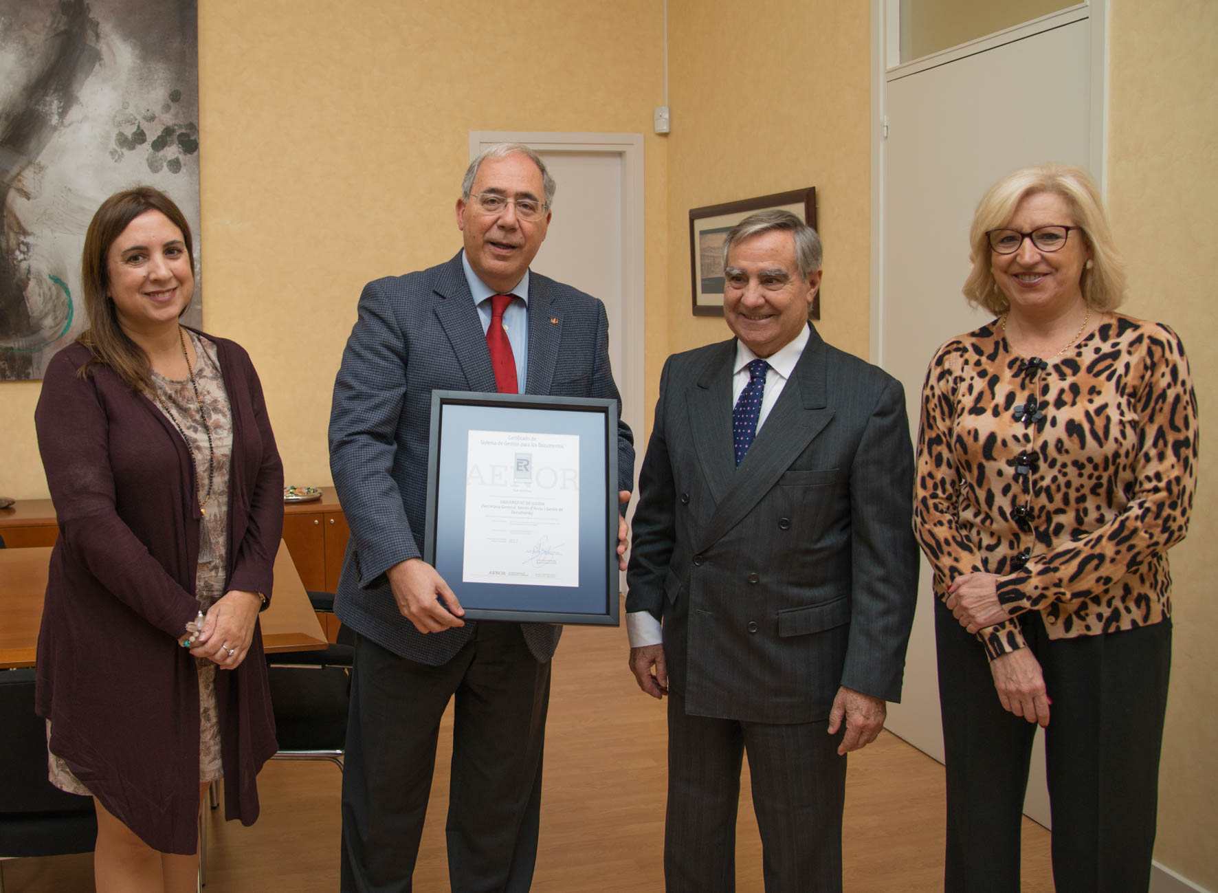 Descarregar pdfEl Servei d'Arxiu i Gestió de Documents (SAGD) de la Universitat de Lleida (UdL) és el primer de tot l'Estat certificat per l'Associació Espanyola de Normalització i Certificació (AENOR) amb el distintiu de qualitat UNE-ISO 30301. Permet evidenciar el compliment dels requisits que s'apliquen per als processos i controls de gestió documental i a la millora continua del sistema que integra tot el cicle de vida de la informació que genera i rep la universitat. El president d'AENOR, Carlos Esteban, ha lliurat avui el certificat al rector de la UdL, Roberto Fernández.