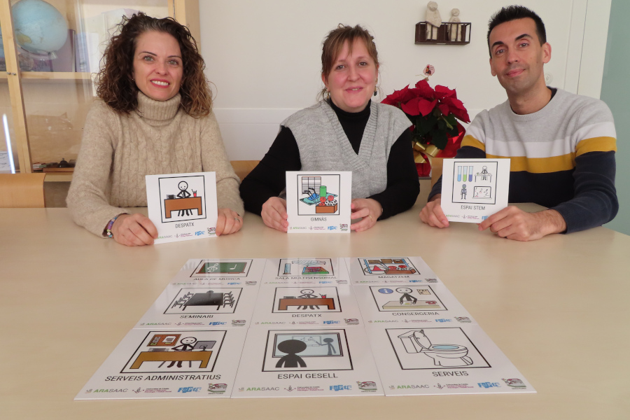 Els pictogrames estan pensats per ser una eina facilitadora de la comunicació i l'accessibilitat cognitiva per això són representacions senzilles que transmeten la informació de manera visual i ràpida, afegeix. De moment ja s'han instal·lat una dotzena al primer pis de la FEPTS a l'entrada d'aules, seminaris, despatxos i els serveis.