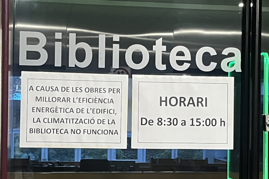 Descarregar pdfLa biblioteca de la Facultat de Lletres, al Rectorat de la Universitat de Lleida (UdL), ha iniciat el curs acadèmic amb horaris reduïts a causa de les obres d'eficiència energètica que s'executen a l'edifici. Les instal·lacions només presten servei als matins, entre les 08.30h i les 15.00h; sempre i quan les temperatures ho permetin, ja que la climatització no funciona. La biblioteca també roman tancada els caps de setmana. Durant el mes de setembre, l'estudiantat pot anar dissabtes i diumenges a la biblioteca de Ciències de la Salut entre les 08.30h i les 20.30h.
