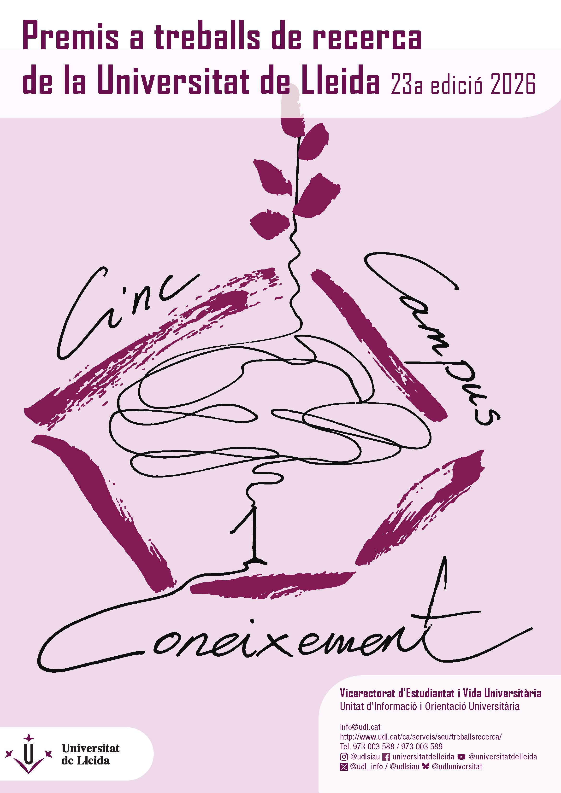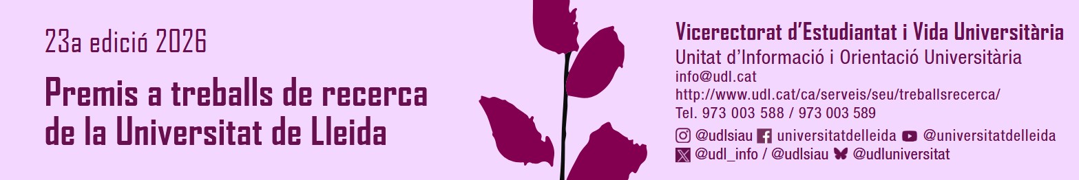 La Universitat de Lleida, amb l'objectiu de fomentar l’esperit de recerca, despertar vocacions per a l'estudi i la investigació i incentivar la tasca educativa que es duu a terme als centres escolars, públics i concertats, convoca la XXIII edició dels Premis als Treballs de Recerca realitzats per estudiants de Batxillerat.