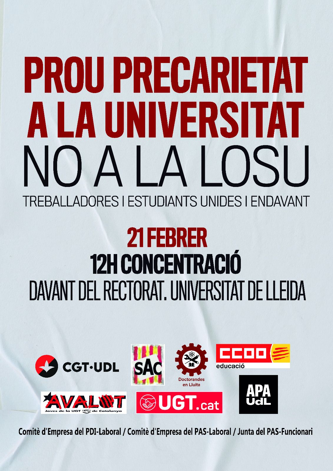 - Treballarem per millorar les condicions dels/les predocs i postdocs.